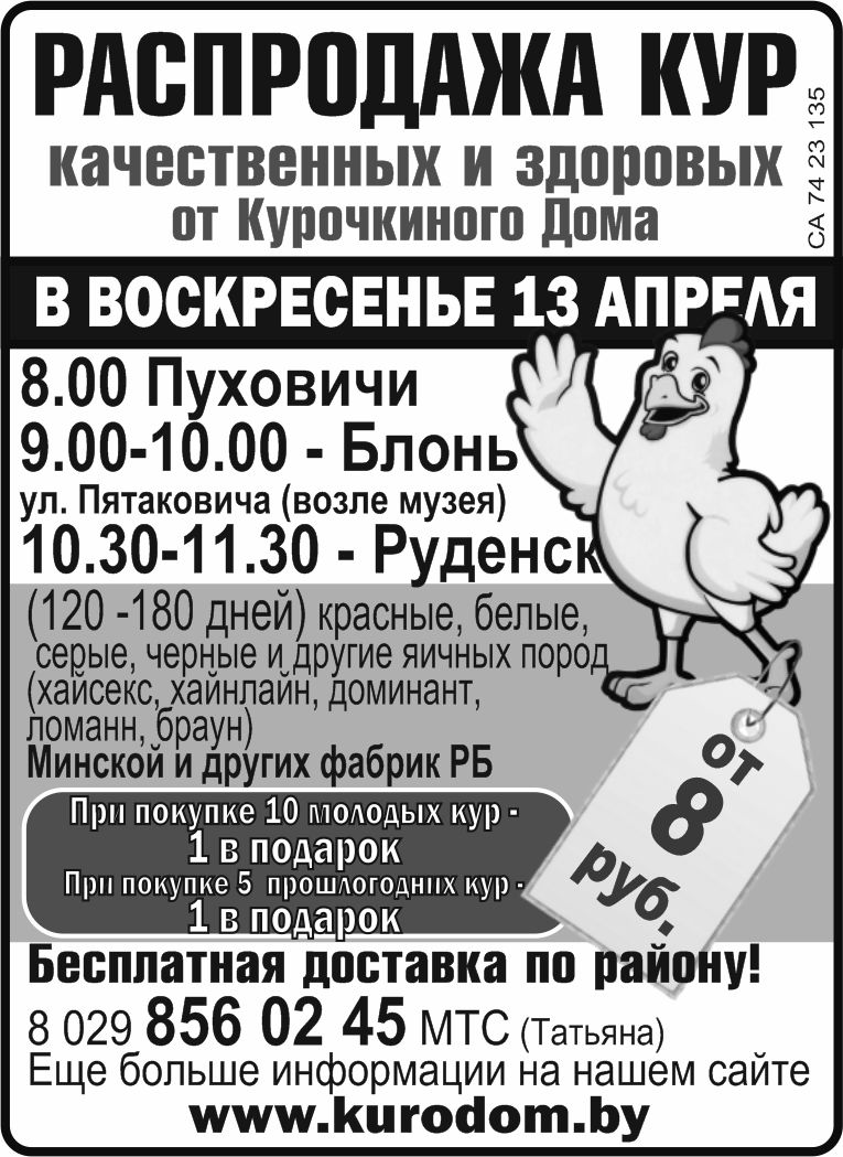 - При покупке 10 молодых кур – +1 в подарок (на выбор)!